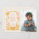 Invitación Foto Floral Oro Rosa Primer Cumpleaños