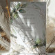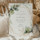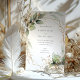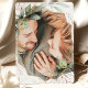 Esta invitación captura la esencia del amor entrelazado con la elegancia de la naturaleza. La parte delantera de la tarjeta contiene una tierna fotografía de la futura pareja, enmarcada por una exuberante cascada de hojas de eucalipto y falsas ramas de oro, que simbolizan su creciente amor. El fondo sigue la temática con una exposición completa de la vegetación acuática y de los productos botánicos dorados que rodean los detalles del boda. Los acogedores tonos de oliva, jade y verde del bosque se mezclan con los ricos tonos dorados, creando una invitación que es a la vez sincera y lujosamente elegante.