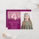 Invitación Foto Magenta Purpurina Rosa en su cuarto cumpleaño