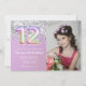 Foto de Rainbow Sparkle 12th Birthday Invitation Purpurina 12th cumpleaños invitación a una fiesta de cumpleaños para un chica de 12 años con escritura moderna y divertidos globos de Relieve metalizado.