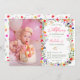 Añada un toque de elegancia bohemia a su hito bebé, primer cumpleaños con nuestra Moda moderna Boho Bright Elegant Colorful flor salvaje foto de primer cumpleaños Invitación sobre fondo blanco. Flores botánicas de tonos rosa, rojo, verde y morado inspiradas en flores silvestres y jardines rústicos acuarelas con vegetación sutil y tipografía moderna de escritura boho.