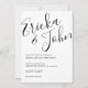 Una invitación de boda moderna pero informal en una caligrafía negra y sans serif. Puedes colocar tu foto en la parte de atrás.