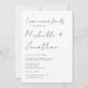 La invitación a bodas con fotografía cristiana representa un diseño simple y moderno en blanco y negro con una introducción inspiradora de las escrituras. En la parte de atrás se muestra la foto de la pareja con la Biblia Verse 1 Corinthians 13:4-8, "El amor es paciente, el amor es amable. No envidia, no presume, no está orgulloso. No deshonra a los demás, no se busca a sí misma, no se enfurece fácilmente, no tiene antecedentes de errores. El amor no se deleita con el mal sino que se regocija con la verdad. Siempre protege, siempre confía, siempre espera, siempre persevera. El amor nunca falla". Este lado hace un keepsake especial y se puede personalizar según tu elección. Si hay algo que no ves o si quieres cambios, por favor contacta conmigo con el botón de Chat en la página de Zazzle.