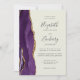 El borde izquierdo de esta elegante y moderna invitación a la boda incluye un borde de ágata color morado adornado con un falso purpurina de oro. El texto del personalizable combina la escritura a mano de carbón gris, el copperplate y las fuentes cursivas en un fondo de marfil. Reemplace fácilmente la imagen de muestra en la parte posterior con su foto vertical,