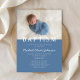 Invitación al bautismo de chico azul de la cruz religiosa, foto moderna y personalizada.