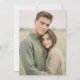 Esta invitación de boda presenta un diseño cálido e íntimo con dos personas paradas muy juntas en un entorno al aire libre, rodeadas de un paisaje natural difuso. La paleta de colores está dominada por tonos terrosos de verdes y beige apagados, creando una atmósfera serena y armoniosa. La técnica de arte fotográfico captura un momento espontáneo, enfatizando la autenticidad y la simplicidad. El ambiente general es tierno y pacífico, perfecto para celebrar el amor y la compañía en su día especial.