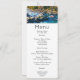 Menú de eventos con una fotografía pintoresca que muestra montañas cubiertas de árboles en colores otoñales. Un río vibrante fluye alrededor de una multitud de rocas.