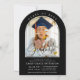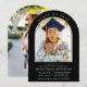 Foto Modern Arch Graduate Script Graduation Party Invitation incluye dos de tus fotos favoritas de tu graduado con el texto "Graduado" en un elegante guión moderno de caligrafía. Sencillo, elegante y elegante. Creado por ©2025 Evco Studio www.zazzle.com/store/evcostudio