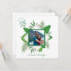 Tu foto de parejas favoritas y texto personalizado resaltan este cuadrado de hoja verde Guardar la tarjeta de invitación de fecha.