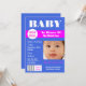 Modernas, únicas y modernas invitaciones planas de 5 x 7" para su ducha de bebé; fiesta de cigüeña; invitación del embarazo o revelación de sexo del bebé. DISEÑO - Este diseño fotográfico se parece a la portada de una revista y tiene plantillas para su redacción personalizada. Una vibrante banda rosa con las palabras - edición especial - y un código de barras en la parte inferior de esta llamativa obra de arte. FOTO - Reemplace la fotografía con la foto de su bebé o la de su esposa / novia y envíela a amigos, familia y colegas de trabajo. COLORES - Azul real, rosa caliente, blanco y negro. SOLICITUDES DE PERSONALIZADO - Para obtener asistencia, cambios de color y/o productos coincidentes, póngase en contacto conmigo en clientrequestrw@gmail.com