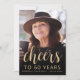 La parte delantera de esta invitación a los 60 años muestra la foto del invitado de honor con un texto de color dorado. La palabra "ovaciones" aparece en un elegante guión de caligrafía de color dorado, seguido por "a 60 años" y el nombre y cumpleaños del invitado de honor en sans serif font. Una pantalla oscura ayuda a hacer que el texto aparezca. Personalizar el reverso con el nombre y los detalles del fiesta en un fondo negro. ¡Una gran manera de celebrar a alguien que cumple sesenta años!