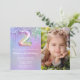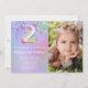 Foto invitada por la fiesta de cumpleaños 2, el purpurina rosado morado gotea la invitación a la fiesta de cumpleaños 2 para un chica de 2 años con escritura moderna y globos de Relieve metalizado divertidos.