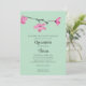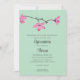 Estas invitaciones de dos lados muestran la foto dentro de un marco elegante en un lado, y todos los detalles de su fiesta en el otro lado. Las invitaciones verdes a la menta están adornadas con ilustraciones de flores de flores de cerezo rosa bonito, lo que las hace perfectas para las celebraciones de primavera.