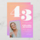 Invitación de cumpleaños 43 a la foto retro gradiente rosa