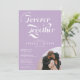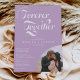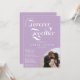 ¡Practicar para siempre juntos! Celebremos la noche de ensayo de nuestra pareja favorita antes del gran día con este clásico y elegante guión de Cena de Ensayo con caligrafía vintage retro en blanco elegante sobre lavanda púrpura con una foto arqueada a un lado. Cuando lo retro se encuentra con el toque moderno.