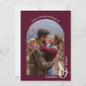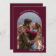 Esta romántica invitación a una boda borgoñona muestra su foto en arco en la parte delantera y los detalles de su ceremonia en la parte trasera. COINCIDIENDO elementos de nuestra colección.