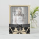 Tarjeta de aniversario feliz con foto tradicional personalizada con lazo negro y patrón floral azul, guión de foto tradicional. Consulte la elegante colección de decoración para bodas y hogar.