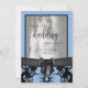 Foto tradicional de aniversario de bodas número 25 feliz con lazo negro, patrón floral azul personalizado, tarjeta de feliz aniversario con letra tradicional. Echa un vistazo a la elegante colección de decoración para bodas y hogar.