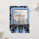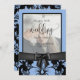 Foto tradicional de aniversario de bodas número 50 con lazo negro, tarjeta de feliz aniversario con guión personalizado y patrón floral azul. Echa un vistazo a la elegante colección de decoración para bodas y hogar.