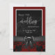 Tarjeta de feliz aniversario con foto tradicional personalizada con lazo negro, patrón floral azul y letra script. ¡Consulta la elegante colección de decoración para bodas y hogar!