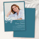 Foto moderna, minimalista, verde azulada invitación a la fiesta de cumpleaños número 40 para una divertida fiesta de cumpleaños. La edad se puede cambiar. Esta invitación es simple y elegante, invitaciones de cumpleaños para adultos para hombres y mujeres. El color de fondo verde azulado puede cambiarse a cualquier color que elija utilizando la herramienta de diseño.