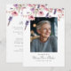 Invitación fotográfica blanca de "Celebración de la vida" de flores silvestres para funeral, disponible para impresión, descarga instantánea y diferentes colores.
