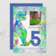 Dinosaurio T-Rex invitación a la quinta fiesta de cumpleaños para celebrar tu pequeño Rex Tyrannosaurus que cumple cinco años con la fiesta de cumpleaños perfecta para el chico que ama los dinosaurios. Este Roaring T-Rex invita a los fans de Dino a una divertida fiesta de cumpleaños. Personalice esta colorida invitación a la fiesta de cumpleaños 5 dino azul y verde con una foto del niño o chica de cumpleaños, el número de cumpleaños y los detalles del fiesta y todos se preparan para un divertido cumpleaños con temas de dinosaurios. Todas las especies de dinosaurios son bienvenidas. Bonita obra de arte original de la artista Catherine Sweetman