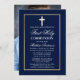 Elegante Marina Azul Primera Invitación de la Santa Comunión con Cruz. Marco dorado. Foto de vuelta.