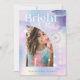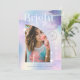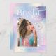 Anunciar y celebrar el graduado con nuestra invitación de fotografía estelar de color pastel de color azul pastel. Nuestro diseño cuenta con un fondo holográfico de color pastel de agua con fondo iridiscente con reservas de arbusto acuático y elementos estrellados. "Futuro brillante" se muestra en una tipografía elegante. Personaliza con el nombre del graduado, la escuela y el año de graduación. Añade la foto de tu graduado en un diseño moderno de marco fotográfico en arco. Diseñado por Moodthology Papery