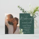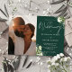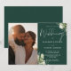 Esta elegante invitación de boda floral verde esmeralda con vegetación puede ser personalizada con su foto especial e información en tipografía chic. Diseñado por Thisisnotme©