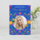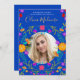 Fotografía Quinceanera Invitación con flores mexicanas para la celebración de los 15 años de su hija. Este tema floral de la quinceañera presenta coloridas flores de arte folclórico mexicano en rojo, rosa, morado y amarillo sobre un fondo azul real. La parte trasera de la tarjeta tiene un ramo de flores de flores de la misma fiesta. La plantilla está preparada para que usted personalizar la tarjeta con todos sus datos personales para su fiesta de Fiesta Quinceanera mexicana. Por favor, busque en nuestra tienda los artículos que coincidan y coordinen.
