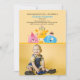 Están listos para un fiesta - un gato rosa, una jirafa amarilla y un perro azul. Añade tu foto debajo del toldo de vieiras y sigue la celebración.La tarjeta es fácil de personalizar con su redacción, fuente, color de fuente y elección de seis tipos de papel.