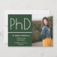 Una invitación para un doctorado. Este diseño minimalista es verde y blanco. La foto es una plantilla que está destinada a ser cambiada por usted mismo. Todas las palabras y ambos colores se pueden personalizar. <i>Fotografía © Storytree Studios, Stanford, CA</i>