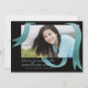 Una invitación moderna con una verde azulada cinta azul que cuelga libremente de tu foto favorita con un fondo negro.