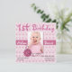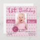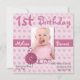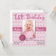 fondo floral rosa Bonito en esta dulce invitación de cumpleaños cuadrado. Una zona de fotos, en el medio, para la foto del niño de cumpleaños y una flor rosa llamativa decora el fondo del marco de la foto. Todo el texto es personalizable para satisfacer las necesidades de su fiesta. Perfecto para el primer cumpleaños de tu bebé. Las invitaciones cuadradas pueden ser más altas en franqueo, consulte las tarifas de su oficina de correos local.