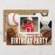 Fútbol, Baloncesto, Béisbol, Fútbol. ¡Genial para un fiesta de niños o cualquier fiesta! Añade tu foto y muestra las habilidades de tu hijo deportivo con esta increíble invitación a la fiesta de la estrella.