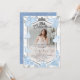 Captura la esencia de tu celebración de Quinceañera con nuestras invitaciones fotográficas sobre tiara y mariposas. Crear recuerdos mágicos con diseños florales de color agua polvorientos azules entrelazados con confeti brillante, todo ello dentro de un marco geométrico moderno. Estas encantadoras invitaciones marcarán el tono para una celebración inolvidable.