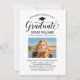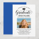 Celebre a su graduado con esta elegante invitación a la fiesta de graduación que presenta un guión de caligrafía "Graduado" floreado acentuado por un icono de gorra de graduado, un retrato de último año y todos los detalles de la fiesta en un diseño limpio y blanco. El diseño simple impulsado por la tipografía deja que la hermosa letra y su foto tomen el centro de la escena con una tarjeta trasera azul real coordinada. Texto totalmente personalizable en todo momento.