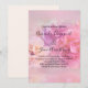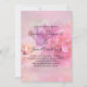 Una invitación de boda con una fotografía que presenta un ramo de claveles rosas y blancos. Puesta sobre un fondo etéreo y soñador.