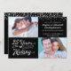 Invite a sus invitados con esta invitación de aniversario de bodas número 25 en negro y plateado con tipografía retro que dice 25 AÑOS EN CREACIÓN e integra el año de su boda como parte del diseño. Incluya fotos de ENTONCES y AHORA para una divertida invitación con un toque del pasado. Los detalles de la invitación a la fiesta están en el reverso.