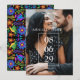 Destaca tu foto favorita con tu fecha especial en la portada. Invitación de boda colorida Fiesta Mexicana con flores de arte popular sobre un fondo negro dramático (puedes cambiar el color según tus gustos). Ideal para bodas de destino en México, bodas de Cinco de Mayo o para alguien que ama la cultura mexicana. Parte de nuestra colección Flores Mexicanas.
