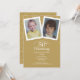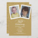 Personaliza con tus fotos favoritas de la infancia y la información de tu aniversario de oro de cincuenta años en tipografía dorada elegante. El reverso presenta corazones chic con confeti en un fondo dorado. Diseñado por Thisisnotme©