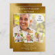 Crea tu propio collage de fotos único. Usa cuatro, cuatro de tus fotos favoritas. Personalice y agregue un nombre y detalles del fiesta. Un fondo falso de aspecto dorado, texto blanco.