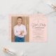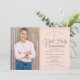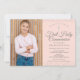 Invitación elegante de primera comunión que incluye delicado polvo de estrellas plateado, puedes personalizar con tu foto especial e información del evento en texto plateado elegante sobre un fondo rosa rubor. Diseñado por Thisisnotme©