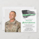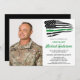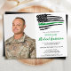 Invitaciones de retiro militar de la delgada línea verde o invitaciones de fiesta de despedida militar. Estas invitaciones de fiesta del ejército de la delgada línea verde son perfectas para una jubilación militar, despedida de despliegues militares, celebración de bienvenida militar, graduación militar y fiesta de despedida de soldados. La bandera de la delgada línea verde representa a todos los militares, ejército, protección fronteriza, patrulla fronteriza, oficial de conservación, guardabosques, guardia de caza, ley federal de aplicación. Personalice esta invitación de bandera militar con el evento de su soldado, nombre y detalles de la fiesta.
