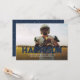 Esta invitación de graduación, con un nombre azul de la marina atrevido en una sola foto, es perfecta para un atleta graduado. Con un tipo de letra tipo letterman deportivo, su diseño se puede personalizar con todos los detalles del gráfico en la parte delantera. La marina y la parte trasera blanca incluyen espacio para dos fotos adicionales así como texto que se puede usar para detalles de invitación a la fiesta de graduación, planes futuros o cualquier otra cosa que quieras. Con su estilo deportivo, esta invitación de graduación y la invitación es genial para chicos y chicas y trabaja con una variedad de fotos.