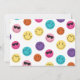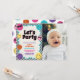Esta tarjeta presenta coloridas sonrisas retro en color rosa azul azul naranja púrpura cara feliz emoji niños tema de cumpleaños.