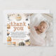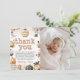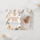 Celebra el primer cumpleaños de tu pequeña con esta célebre tarjeta de agradecimiento con la temática de la foto de Halloween. Con calabazas lindas, fantasmas, telarañas y espacio para la foto de su hijo, este diseño es perfecto para enviar aprecio a los invitados después de una celebración de cumpleaños espléndida. Ideal para niños o chicas nacidos en octubre o para fiestas con temática de otoño. Personalice con el nombre y la foto de su bebé por un único recuerdo.