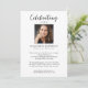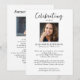 Honre a su ser querido con esta hermosa invitación de celebración de vida. El frente presenta una foto y todos los detalles de su celebración. La parte trasera ofrece espacio para otra foto y poema o escritura (o eliminar). La plantilla es muy fácil de usar y cambiar - cree una invitación única, clásica y que será apreciada por siempre.