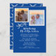 Anuncios de boda con fotos de color azul marino para recién casados. Las parejas que se casan en una ceremonia privada en un destino pueden anunciar su estado como "Sr. y Sra." e invitar a los invitados a una recepción después del evento. Esta tarjeta tiene un tema marino en azul marino con dos imágenes de estrellas de mar cerca de la parte superior. Dos fotos cuadradas, una ligeramente más grande que la otra, se pueden utilizar para compartir imágenes de la ceremonia o luna de miel. El texto grande en escritura blanca en la parte superior presenta a la pareja casada y el texto impreso debajo es fácil de personalizar con la cantidad de palabras que se desee. Agregue espacios entre líneas según lo desee. La parte posterior tiene un patrón de estrellas de mar que coincide con las dos pequeñas estrellas de mar en la parte delantera. Elija papel de lino u otro, y redondee las esquinas si